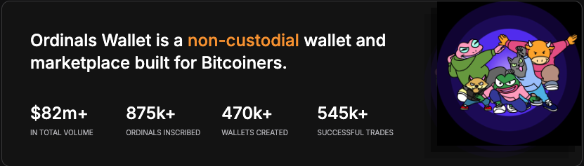 Ordinals Wallet is a non-custodial Bitcoin wallet and marketplace
